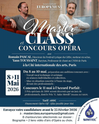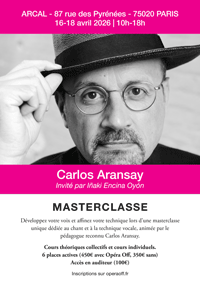 Développez votre voix et affinez votre technique lors d’une masterclasse unique dédiée au chant et à la technique vocale, animée par le pédagogue reconnu Carlos Aransay.