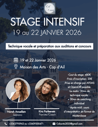 Masterclass / Technique vocale et préparation aux auditions et concours / Norah AMSELLEM & Kira PARFEEVETS - Nice