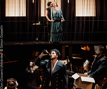 « La distribution est rigoureusement la même que celle de l’an passé, une équipe de jeunes chanteurs à l’enthousiasme communicatif qui ont manifestement peaufiné leur interprétation tant scénique que vocale. Doté d’un physique avenant, Timothée Varon capte d’emblée l’attention, tant par l’aisance de sa gestuelle que par son timbre chaleureux et profond. Il campe un Don Giovanni dominateur qui séduit autant qu’il impressionne. Son air « du champagne » chanté à vive allure et d’une voix claironnante, enthousiasme le public tout comme sa sérénade dont la reprise en demi-teinte témoigne d’un goût exquis. A ses côtés, Adrien Fournaison ne démérite pas. Son Leporello velléitaire et soumis ne manque pas d’atouts. Tout aussi à l’aise sur le plateau que son maître, sa voix de stentor et sa technique accomplie font mouche notamment dans son air du catalogue, magistralement chanté. Les deux autres clés de fa sont à la hauteur de leurs partenaires, Mathieu Gourlet est un Masetto robuste aux graves profonds et sonores, quant à Nathanaël Tavernier son timbre de bronze convient idéalement à son personnage de revenant. Enfin Abel Zamora (Ottavio) possède une voix claire et un souffle qui paraît inépuisable. L’élégance de son style et la subtilité de son legato font merveille dans ses deux airs, notamment « Il mio tesoro », largement ovationné par le public. Côté féminin, nous sommes également à la fête, Michèle Bréant est une exquise Zerline à la voix cristalline et à la ligne de chant subtilement nuancée. Son « Batti, batti, o bel Masetto » est un moment de grâce. La Donna Elvira de Margaux Poguet est véhémente à souhait au premier acte face à Don Giovanni. Dotée d’une voix large au timbre cuivré, ses aigus percutants ne sont pas exempts de légères stridences qui siéent à son personnage de femme trahie. Au deuxième acte elle interprète un « Mi tradi’ » bouleversant orné de vocalises parfaitement maîtrisées. Marianne Croux campe une Donna Anna aux affects contrastés, « Or sai chi l’onore » a toute l’autorité requise tandis que son « Non mi dir » empreint de douceur et de nostalgie dans sa partie lente s’achève sur un feu d’artifice de coloratures d’une belle précision. Quatre choristes de talent viennent compléter cette distribution sans faille. (…) »