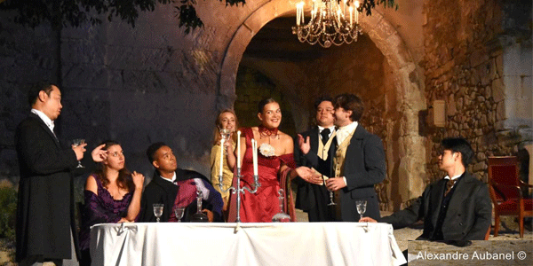 « La 9ème édition des « Opéras et Concerts au coucher de soleil » s’est ouverte hier soir 15 août à Oppède-le-Vieux, l’un des plus beaux villages perchés du Luberon, dans un éclat absolument sublime avec la première représentation de La Traviata de Giuseppe Verdi (deux autres représentations à suivre, les 16 et 18 août). Et quel cadre ! Imaginez : la mythique Place Sainte-Croix, devant la porte majestueuse de la vieille ville d’Oppède le Vieux, ce village perché du Luberon qui semble tout droit sorti d’un rêve. La scène naturelle, baignée de la douce lumière du crépuscule puis des étoiles, est à couper le souffle : encadrée par un magnifique micocoulier à gauche, un grand cyprès élancé à droite, et deux oliviers séculaires le long des remparts. C’est dans ce décor unique, véritable théâtre à ciel ouvert, que l’émotion déchirante de Violetta a pris vie sous une forme inoubliable.